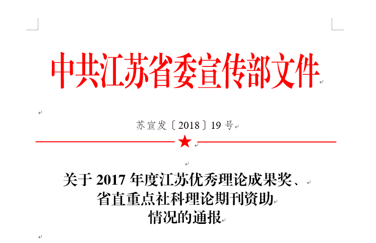 近日,江苏省委宣传部公布了2017年度江苏优秀理论成果奖及省直重点社科理论期刊资助评选结果。经组织申报、评议和审核,永利官网四位教师荣获2017年度江苏优秀理论成果奖。