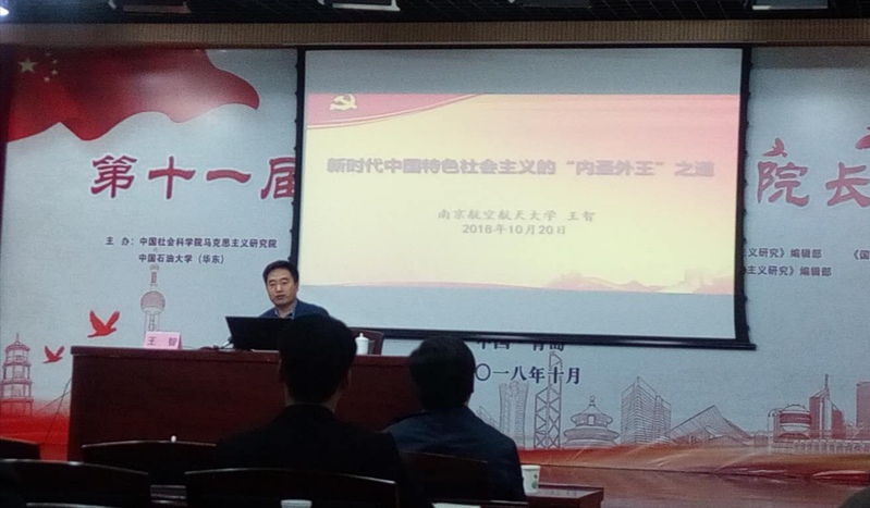 王智院长的主题发言题为“新时代中国特色社会主义的内圣外王之道”。在发言中,王智认为中国特色社会主义进入新时代,既需中国共产党通过“全面从严治党”,以自我革命而至“内圣”;又需中国共产党基于“内圣”来外化行动及功业锻造、担当责任,实现“外王”之天下使命。因此一方面,中国共产党必须以党的自我革命来推动党领导人民进行的伟大社会革命,把党建设成为始终走在时代前列、人民衷心拥护、勇于自我革命、经得起各种风浪考验、朝气蓬勃的马克思主义执政党;另一方面,新时代中国特色社会主义的历史来由、现实成就、道路示范和方略措施均具有显然的世界意义,一种去除“霸道”、基于人类命运共同体的新型世界意义。中国共产党以自我革命担负天下情怀,这是旧式的“内圣外王”跨越时空的新生意蕴。