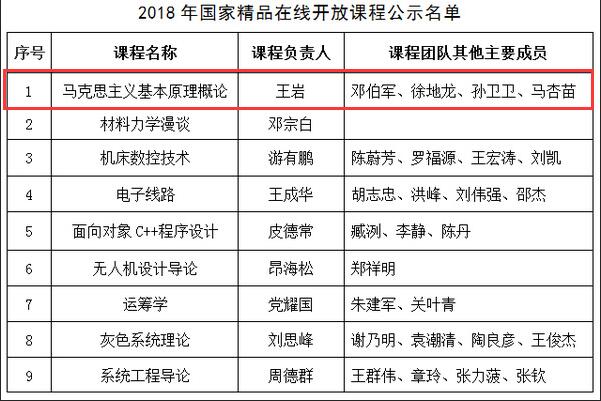 近日,教育部公示了2018年国家精品在线开放课程认定结果,我校组织申报的9门课程上榜,永利官网马克思主义基本原理概论入选。