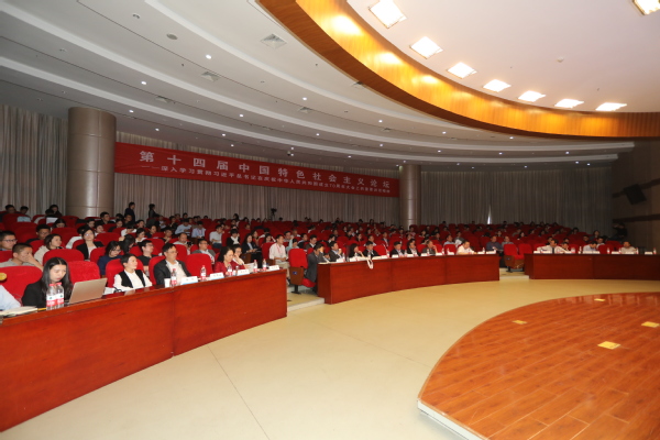 为隆重庆祝中华人民共和国成立70周年,深入学习贯彻习近平总书记在庆祝中华人民共和国成立70周年大会上的重要讲话精神,进一步推动我国马克思主义理论研究和创新发展,10月19日至20日,红旗文稿杂志社、高等教育出版社《思想理论教育导刊》编辑部、永利集团yl6809官网共同主办,我校永利集团yl6809官网、党委宣传部、学生工作处承办的第十四届中国特色社会主义论坛在我校成功举办,本次论坛主题为“深入学习贯彻习近平总书记在庆祝中华人民共和国成立70周年大会上的重要讲话精神”,是一场全国性、高层次的中国特色社会主义理论研讨会。