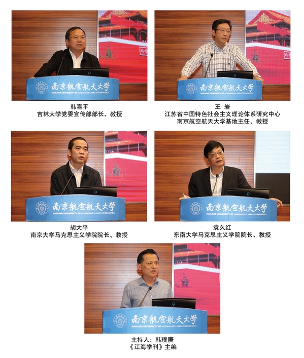 在专家主旨发言阶段,天津大学永利集团yl6809官网院长(原国防大学马列所所长)颜晓峰、中国社会科学院马克思主义研究院副院长辛向阳、中共中央党校(国家行政学院)永利集团yl6809官网薛广洲、中国浦东干部学院副院长刘靖北、安徽省社会科学院院长曾凡银、中国人民大学永利集团yl6809官网党委书记王易、吉林大学党委宣传部部长韩喜平、湘潭大学永利集团yl6809官网教授李佑新、首都师范大学永利集团yl6809官网院长王淑芹、南京大学永利集团yl6809官网院长胡大平、江苏省中国特色社会主义理论体系研究中心永利集团yl6809官网基地主任王岩、东南大学永利集团yl6809官网院长袁久红、北京科技大学永利集团yl6809官网院长彭庆红、南京师范大学永利集团yl6809官网院长王刚、复旦大学永利集团yl6809官网院长李冉、西安交通大学永利集团yl6809官网刘儒、山东大学永利集团yl6809官网徐国亮、南京大学信息管理学院党委书记姜迎春、清华大学永利集团yl6809官网副院长朱安东、苏州大学永利集团yl6809官网院长田芝健、贵州大学永利集团yl6809官网院长张国安、云南大学中国特色社会主义研究中心主任蒋红、南通市委宣传部副部长黄正平等23位专家围绕马克思主义为什么“行”、中国共产党为什么“能”、中国特色社会主义为什么“好”、“中国特色社会主义的本质特征”、“中国共产党是一个守正创新的马克思主义政党”、“人民奋斗是实现中华民族伟大复兴根本力量”、“民粹主义辨析”、“构建人类命运共同体的方法论意蕴”、“推进国家治理体系和治理能力现代化的路径选择”、“新中国70年,中国特色社会主义的理论原典”、“中华优秀传统文化与中国特色社会主义文化之间的关系”、“中国式现代化的根本特征”、“四个自信根本上是中国特色社会主义自信”等主题进行了主旨发言。
