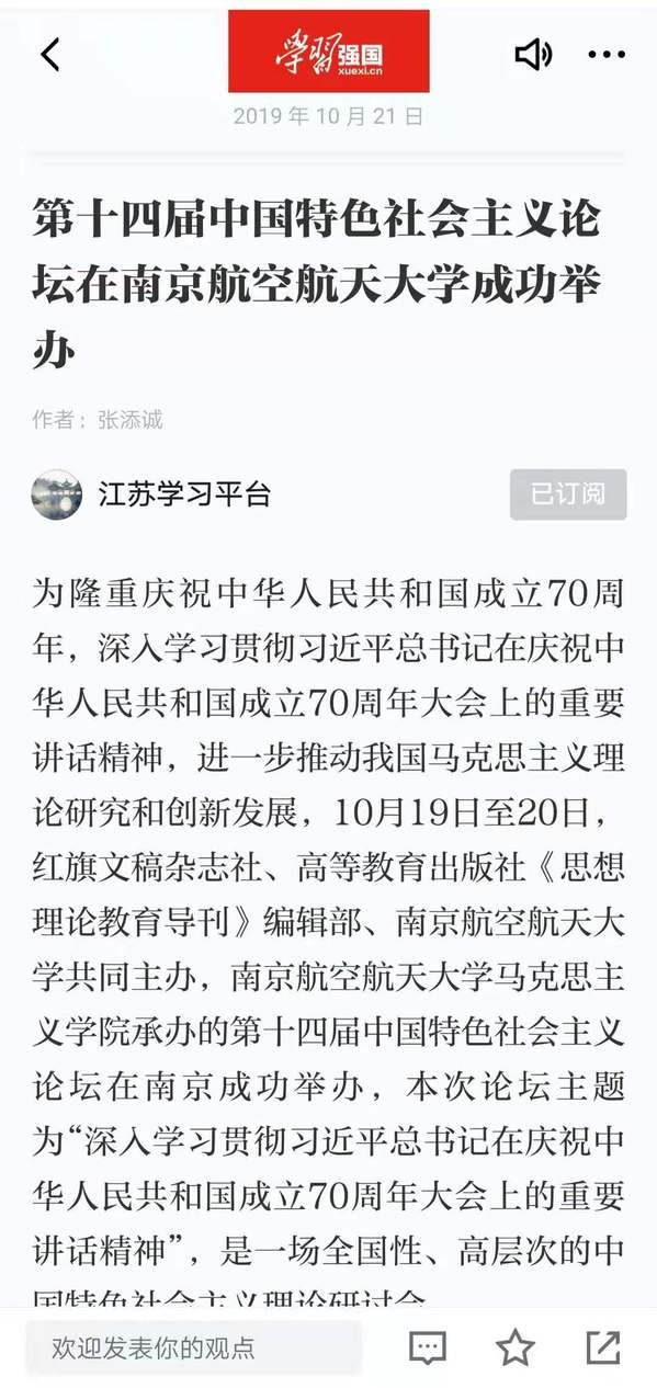 10月21日,“学习强国”平台报道了由红旗文稿杂志社、高等教育出版社《思想理论教育导刊》编辑部、永利集团yl6809官网共同主办的第十四届中国特色社会主义论坛。现转发全文: