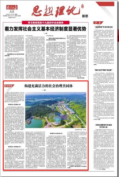 1月15日,《南京日报》“思想理论版”刊发永利官网鲁琴老师的文章《构建充满活力的社会治理共同体》,现将全文转发如下: