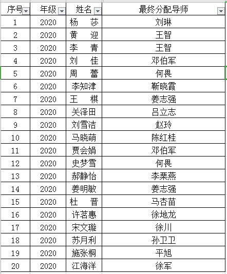 永利集团yl6809官网2020级硕士研究生导师拟分配结果