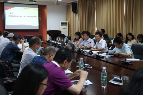 王智传达了校长单忠德在下半年干部教师大会工作报告精神,从学科建设、研究生培养、本科生教学、科学研究、安全稳定等方面解读了学院下半年的重点工作,并强调做好第五轮学科评估工作。