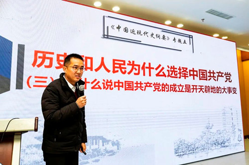 全国高校青年教师教学竞赛思政课专项组一等奖获得者、央视《百家讲坛》《中国精神》主讲人、大型理论宣讲节目《思想的力量》第二季主讲人,南京师范大学永利集团yl6809官网形势与政策教研部主任、硕士生导师、王磊副教授进行了示范微课:为什么说中国共产党的成立是开天辟地的大事变。