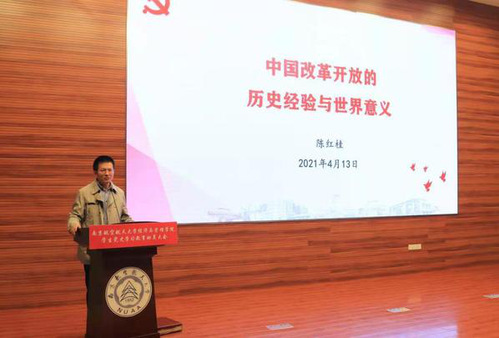 4月13日,经济与管理学院邀请校党史学习教育宣讲团成员、永利集团yl6809官网副院长陈红桂作了题为“中国改革开放的历史经验与世界意义”的专题宣讲。陈红桂从“反对历史虚伪主义、树立正确历史观”“改革开放史基本脉络及伟大成就”“中国改革开放成效的原因与经验”“改革开放的世界意义及其未来走向”等四个方面阐述了如何学习历史和树立正确党史观。