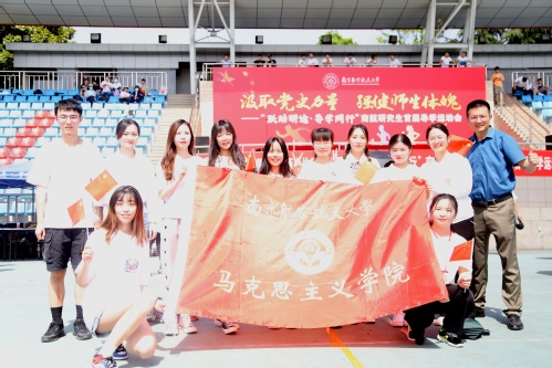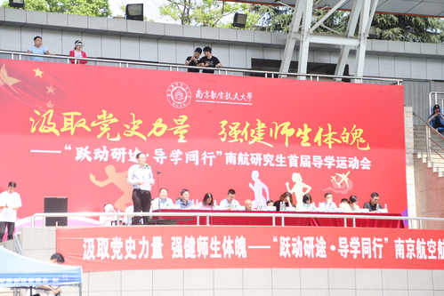 5月25日,以“学党史、悟精神、强体魄、促和谐”为目标,“跃动研途·导学同行”南航研究生首届导学运动会于将军路校区西操场举办。永利官网与艺术学院、外国语学院联合组队,院党委副书记、副院长陈红桂,青年教师胡媛媛与9名研究生代表学院参加,最终荣获最佳组织奖。