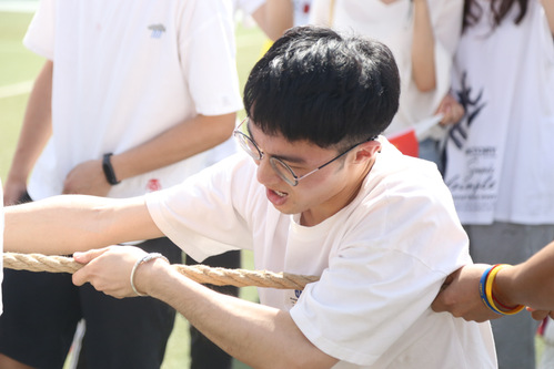 运动会的第一个项目是师生拔河友谊赛,永利官网派宋文璇同学为代表加入学生队,与老师队进行紧张而激烈的对抗。