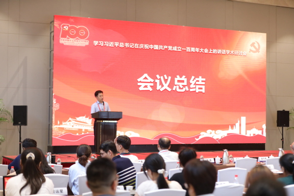为庆祝中国共产党成立一百周年,深入学习贯彻习近平总书记在庆祝中国共产党成立一百周年大会上的重要讲话精神,推进党史学习教育与研究深化,推进新时代中国特色社会主义重大理论与实践命题研究与平台建设,2021年7月3日,“探精神之源 论百年风华:学习习近平总书记在庆祝中国共产党成立一百周年大会上的讲话”学术研讨会在我校举行。