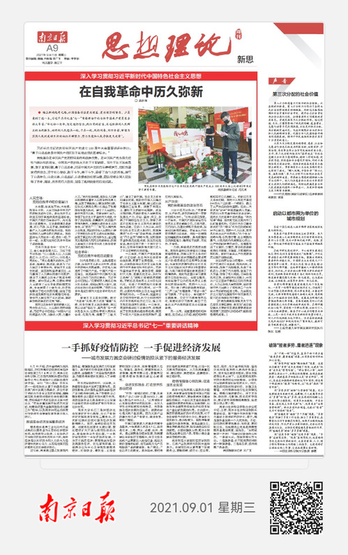 9月1日,《南京日报》A9版刊登永利官网吴永祥老师的文章《在自我革命中历久弥新》,现将全文转发如下: