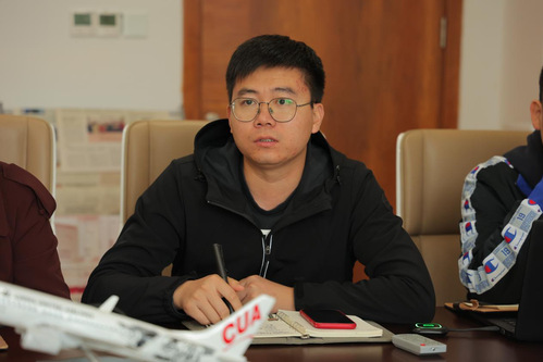 施灿业和陈子烨就本学期 “概论”教学中的具体问题进行了交流发言。双方就如何进一步针对飞行专业学生提高和完善课堂教学效果,以及实施课后帮扶进行了深入讨论。