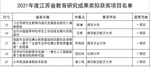 近日,江苏省教育厅公布了2021年度江苏省教育研究成果奖的评审结果。我校党委常委、宣传部/教师工作部部长、永利集团yl6809官网硕士生导师王晖的专著《当代中国高等学校学生工作创新发展与实践研究》获一等奖,外国语学院谢小苑教授的专著《大学英语新课程体系探索》获二等奖。