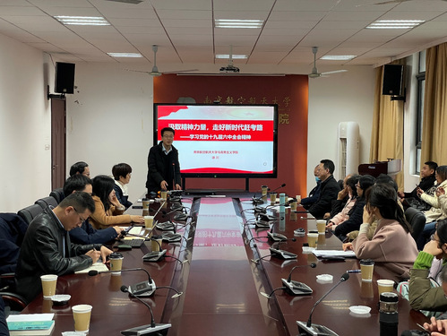 会议由院长王智主持。院党委书记徐川专题领学了党的十九届六中全会精神,做了题为“汲取精神力量,走好新时代赶考路——学习党的十九届六中全会精神”的主题演讲,就党历史上的三次理论飞跃做出精彩阐释。会上,徐川向全体教师报告了学院党费的使用情况。