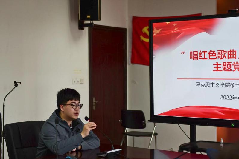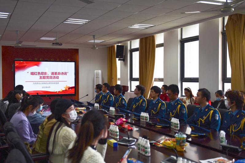为了丰富疫情防控封校期间的支部教育活动形式,扎实推进“不忘初心、牢记使命”的主题教育,在中国共产主义青年团建团100周年之际,永利官网硕士研究生党支部于4月17日下午联合校国旗班共同举办以歌颂党、歌颂祖国为内容的主题党日活动。本次活动由支部组织委员刘烨晖主持,党支部全体党员、入党积极分子参加活动。