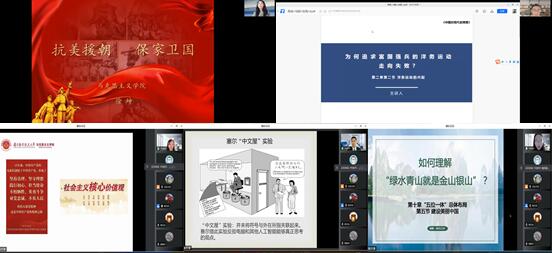 本次活动以线上教学展示形式开展。参赛选手赛前一天抽签确定汇报顺序,赛前20分钟抽取比赛教学节段,根据抽取的1个教学节段内容进行不超过20分钟的课堂展示。学院教师徐坤、刘亮、黄璐、惠成刚、陈子烨作为参赛选手,分别围绕“抗美援朝 保家卫国”“为何追求富国强兵的洋务运动走向失败?”“坚定文化自信 繁荣发展社会主义文化”“意识与人工智能”“如何理解‘绿水青山就是金山银山’?”等主题进行教学展示,内容涉及“中国近现代史纲要”“毛泽东思想和中国特色社会主义理论体系概论”“马克思主义基本原理”等思想政治理论课程。参赛青年教师赛前精心准备,赛中精彩展现。