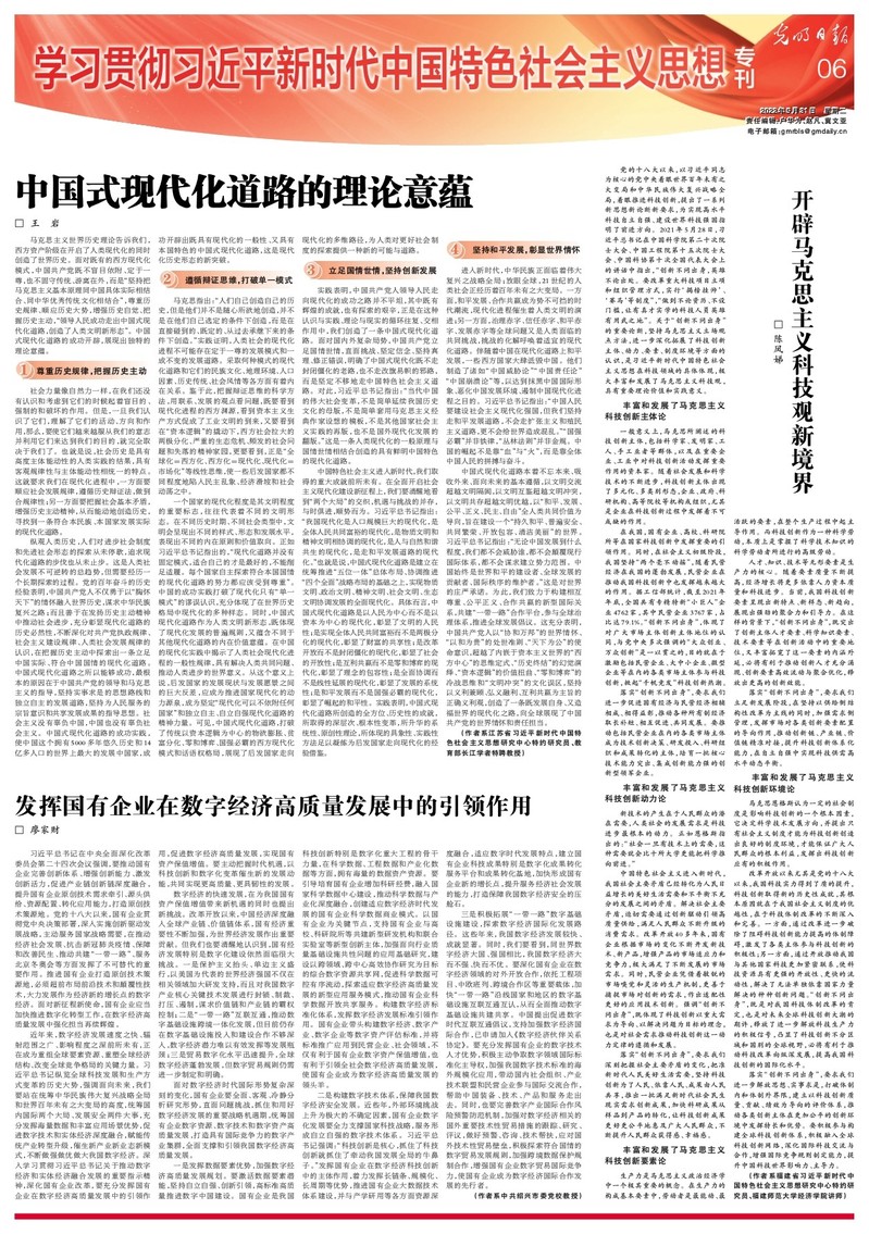 5月31日,《光明日报》第06版“学习贯彻习近平新时代中国特色社会主义思想”专刊刊发了永利官网王岩教授的理论文章《中国式现代化道路的理论意蕴》,现将全文转发如下: