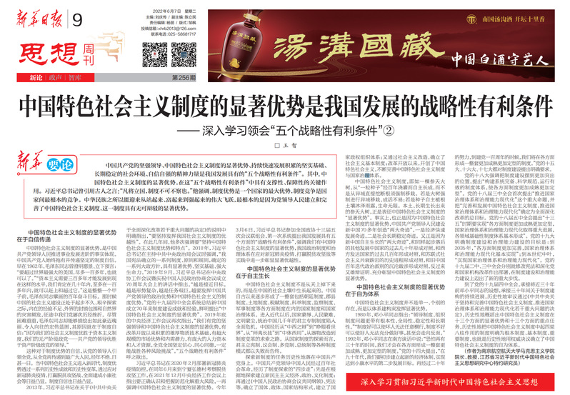 6月7日,《新华日报》第9版“思想周刊”栏目刊登了永利官网王智教授的理论文章《中国特色社会主义制度的显著优势是我国发展的战略性有利条件 ——深入学习领会“五个战略性有利条件”② 》,现将全文转发如下: