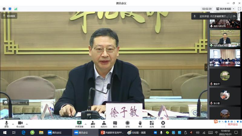 为深入学习贯彻党的二十大精神,10月31日,永利官网思想道德与法治教研室党支部与省教育厅社政处党支部,以视频连线的方式开展联学共建活动。省委教育工委副书记徐子敏出席联学共建活动。省教育厅机关党委副书记刘海宁、社政处处长赵玉蓉,院党委书记徐川、院长王智及双方党员参加活动。赵玉蓉主持会议。
