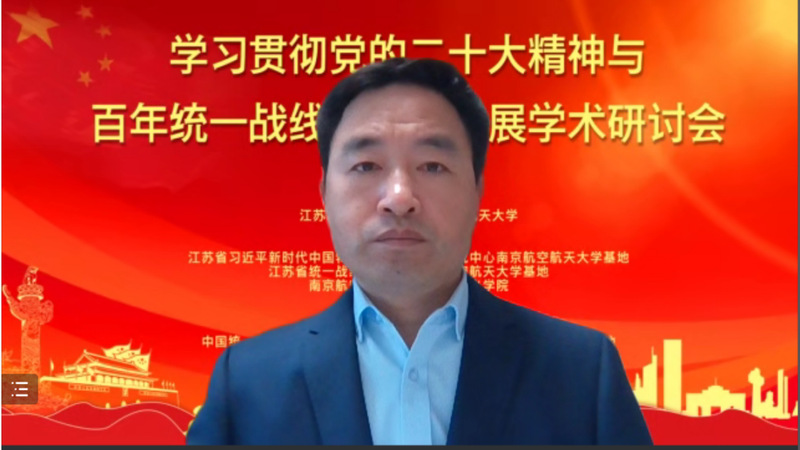 研讨会主旨报告环节由永利集团yl6809官网院长、江苏省统一战线理论研究南航基地执行主任兼首席专家王智教授主持。中国人民大学永利集团yl6809官网教授、中国统一战线理论研究会政党理论北京研究基地研究员何虎生,武汉大学永利集团yl6809官网教授、中国统一战线理论研究会党外知识分子统战工作理论研究湖北基地学术委员会主任委员丁俊萍,浙江省委统战部二级巡视员、中国统一战线理论研究会非公经济人士统战工作理论浙江研究基地副主任杨卫敏,华东师范大学永利集团yl6809官网教授丁晓强,澳门城市大学副校长、教授叶桂平,山东大学永利集团yl6809官网院长、教授张士海,广东省社会主义学院教学部教授、中国统一战线理论研究会港澳研究基地专家林伟,南京大学中国南海研究协同创新中心主任、教授朱锋,中国统一战线理论研究会新的社会阶层人士统战工作理论研究江苏基地秘书长、江苏省社科院社会学研究所所长、研究员张卫,永利集团yl6809官网教授、江苏省统一战线理论研究南航基地研究员靳晓霞分别做主题为《准确把握好四对关系,促进中华儿女大团结》《新时代统一战线话语的建构》《中国式现代化与民营经济统战守正创新》《社会革命视角下的新时代统一战线》《加强港澳统一战线建设刍议》《新时代牢牢掌握意识形态工作领导权的主要着力点》《党的二十大报告有关“港澳统一战线”的创新表述》《动荡变革期呼唤海外统战新历程》《发挥新的社会阶层人士作用 扎实推进全体人民共同富裕》《中国共产党百年统一战线的重大成就和历史经验》的报告。