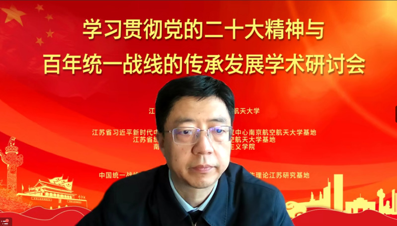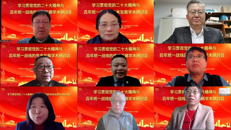 为深入学习贯彻党的二十大精神,深入学习贯彻习近平总书记关于做好新时代党的统一战线工作的重要思想,认真研究党的百年统一战线的重大成就和历史经验,探讨交流新时代统一战线理论创新发展,由中共江苏省委统战部、永利集团yl6809官网主办,江苏省统一战线理论研究永利集团yl6809官网基地、江苏省习近平新时代中国特色社会主义思想研究中心永利集团yl6809官网基地、永利集团yl6809官网承办,江苏省社会主义学院、中国统一战线理论研究会新的社会阶层人士统战工作理论研究江苏基地协办的“学习贯彻党的二十大精神与百年统一战线的传承发展”研讨会于2022年12月18日在永利集团yl6809官网召开。中央统战部有关部门领导和专家,江苏和有关兄弟省市统战部、社会主义学院领导和同志,以及来自中国人民大学、武汉大学、南京大学、华东师范大学、山东大学、南开大学、厦门大学、中国矿业大学、南京师范大学、永利集团yl6809官网等高校和科研院所的百余位专家学者通过线上腾讯会议的方式参会,围绕本次论坛主题“学习贯彻党的二十大精神与百年统一战线的传承发展”展开了深入交流探讨。