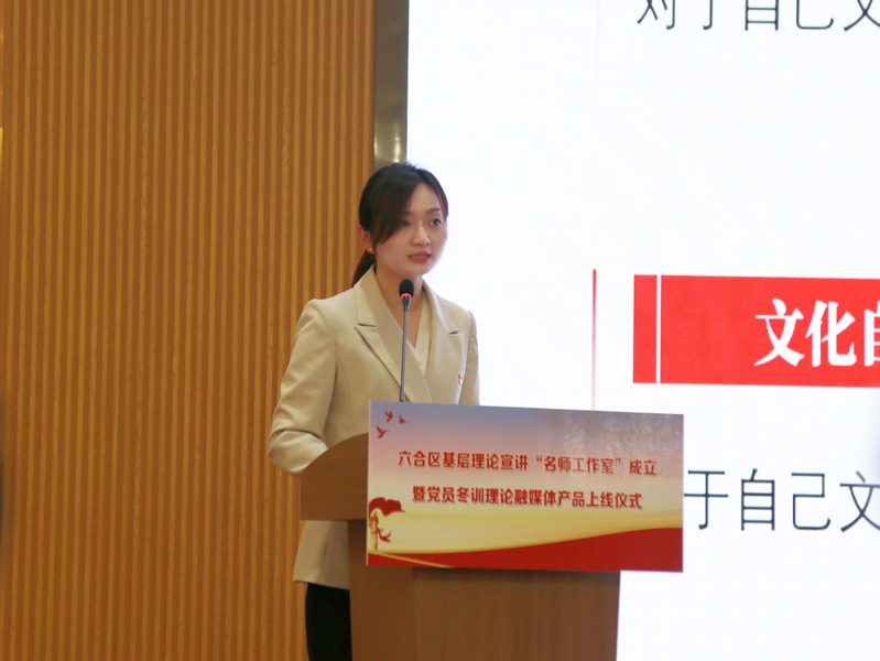 活动中,六合区基层理论宣讲“名师工作室”正式成立。永利官网教师陈红桂、刘亮、胡媛媛、陈子烨以及东南大学、南京信息工程大学的7名教师共同获聘为导师,每位导师分别结对3名学员,通过“名师结对”“传帮带”,助力越来越多优秀理论宣讲者在六合持续涌现,不断为六合实践发声、为理论传播助力。