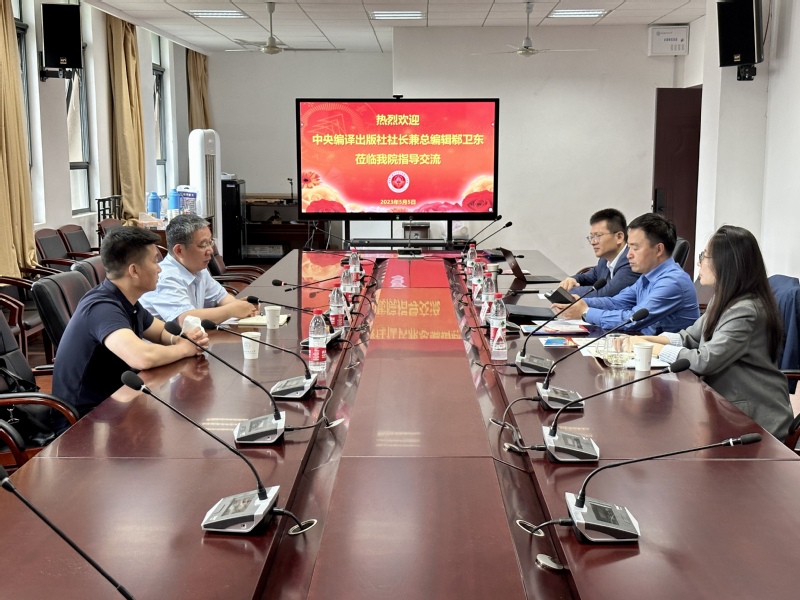5月5日上午,中央编译出版社社长、总编辑郗卫东,对外传播中心负责人闫晓东一行莅临永利官网调研交流。院长王智、院党委副书记阙愚、副院长陈红桂等参加座谈。