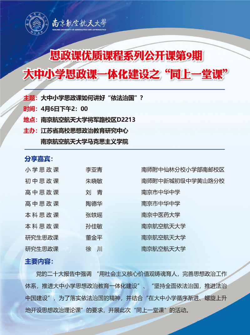 “思政课优质课程系列公开课”第9期:大中小学思政课一体化建设之“同上一堂课”