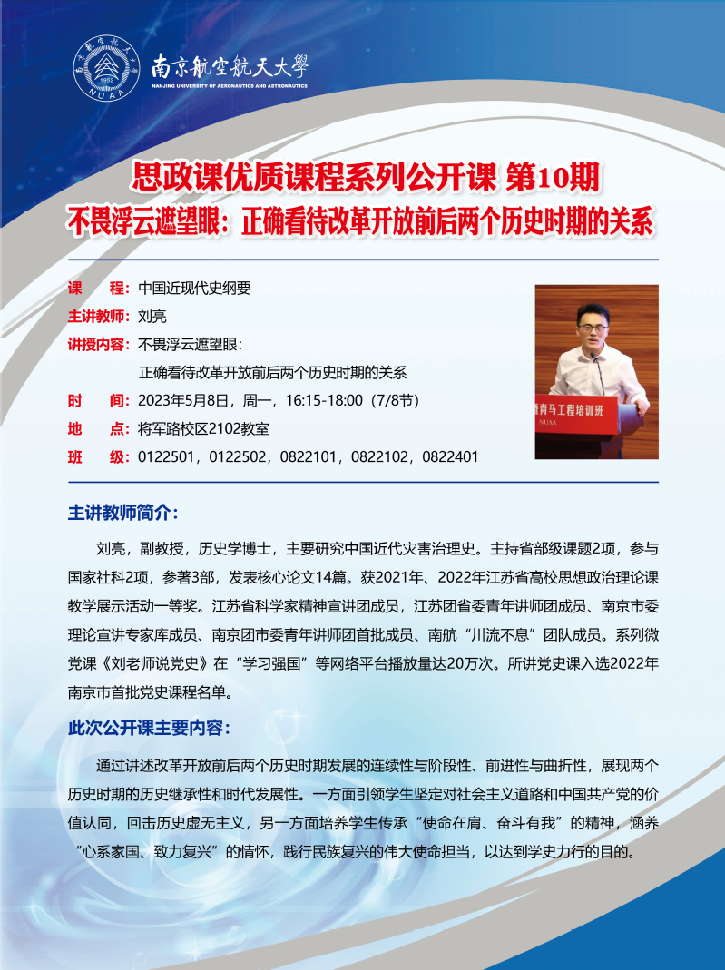 “思政课优质课程系列公开课”第10期:不畏浮云遮望眼:正确看待改革开放前后两个历史时期的关系