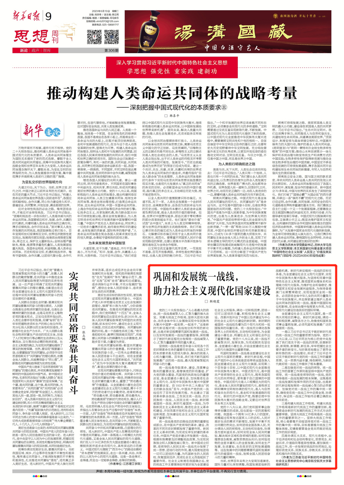 6月13日,《新华日报》第9版“思想周刊·领航”栏目刊登了永利官网靳晓霞教授的理论文章《巩固和发展统一战线,助力社会主义现代化国家建设》,现将全文转发如下: