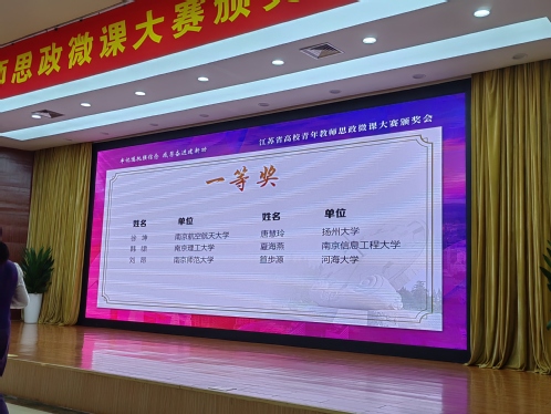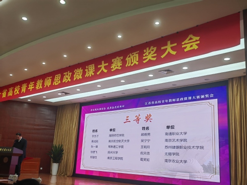 日前,江苏省教育厅公布了全省高校青年教师思政微课大赛的评选结果,永利官网喜获佳绩,获得一等奖1项,三等奖1项。其中,徐坤老师获一等奖、惠成刚老师获三等奖。