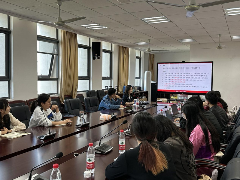 第十三期“领航学堂·学术沙龙”于近日在永利集团yl6809官网502会议室举行。本期学术沙龙特邀永利官网胡媛媛老师作题为“开题报告与文献综述撰写”的主题分享。活动由23级硕士研究生石雯轩主持。