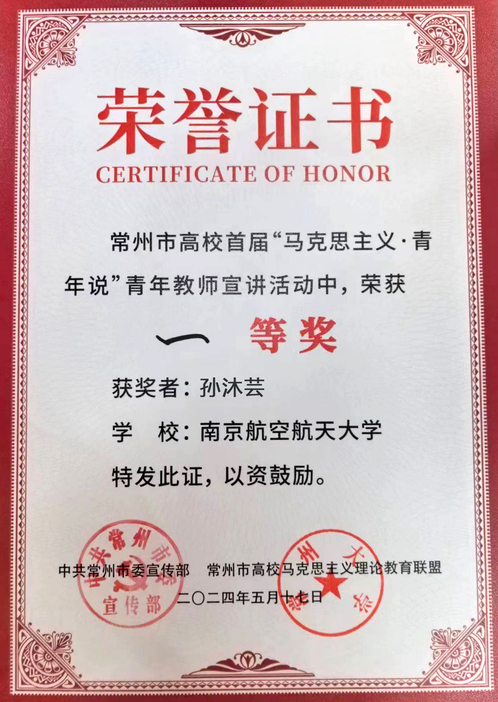 近日,由中共常州市委宣传部、常州市高校马克思主义理论教育联盟主办的“马克思主义·青年说”青年教师理论宣讲活动中,永利官网教师孙沐芸荣获一等奖。