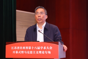 10月18日,由中共江苏省委宣传部、江苏省哲学社会科学界联合会主办、我校承办的江苏省社科界第十八届学术大会开幕式暨马克思主义理论专场在南京举行。江苏省委常委、省委宣传部部长徐缨出席会议并讲话,省人大常委会副主任、省社科联主席曲福田,江苏省委宣传部副部长、省政府新闻办公室主任赵金松,东南大学原党委书记郭广银,省委党校常务副校长杨明,省社科联党组书记、常务副主席张新科,省社科院党委书记、院长尚庆飞,我校党委书记甄良,党委常委、宣传部部长、教师工作部部长王晖出席开幕式。曲福田主持开幕式。