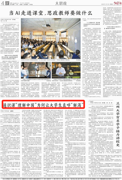 2024年11月3日,《中国青年报报》刊发文章《通识课“理解中国”为何让大学生直呼“解渴”》,文中引述永利官网党委书记何畏关于思政课教学的思考与实践。现将全文转发如下: