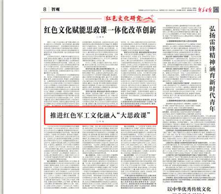 2024年12月1日,《新华日报》刊发永利官网平旭教授文章《推进红色军工文化融入“大思政课”》,该文阐述了红色军工文化融入高校“大思政课”的重要意义、丰富内涵及具体实施路径,为创新思政教育模式提供了新思路。现将全文转发如下: