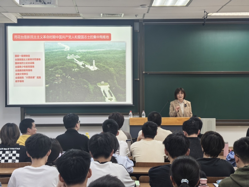 为深入贯彻落实习近平总书记关于学校思政课建设的重要指示和关于“大思政课”的重要指示批示精神,3月26日,雨花英烈管理局副局长向媛华应邀走进我校“中国近现代史纲要”思政课堂开展“馆长讲思政课”活动。马克思学院院长王智以及来自长空学院的100余名学生共同参与。