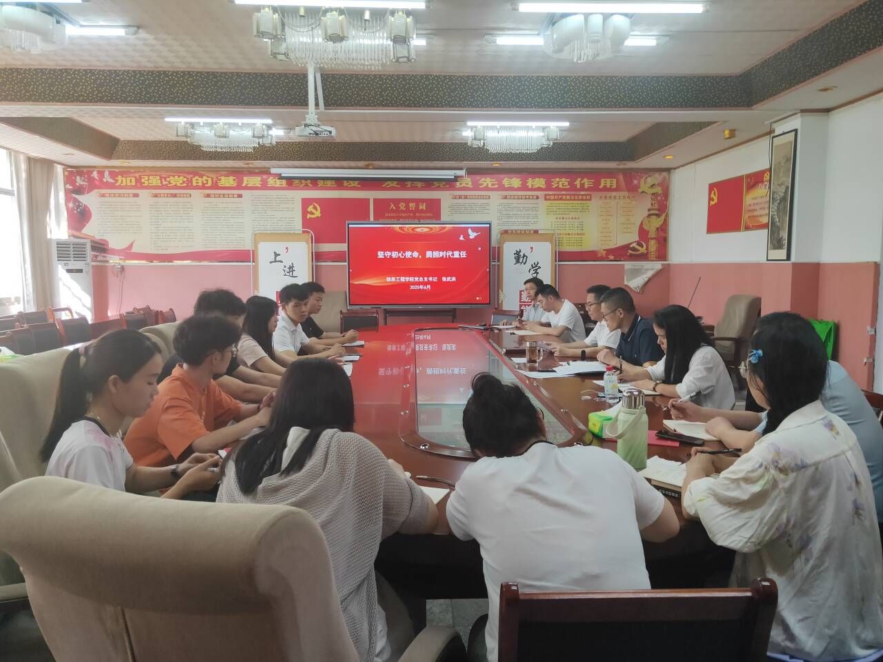 “爱国奉献强党性,永葆赤子之心”。爱国是中华民族的精神核心,奉献是共产党员的高尚品质。呼吁毕业生党员们要将爱国之情与奉献之志紧密结合起来,不断强化党性修养,永葆赤子之心。鼓励大家无论身处何地、从事何种职业,都要心系祖国,关注国家的发展动态,积极投身社会公益事业,用实际行动诠释奉献的意义。
