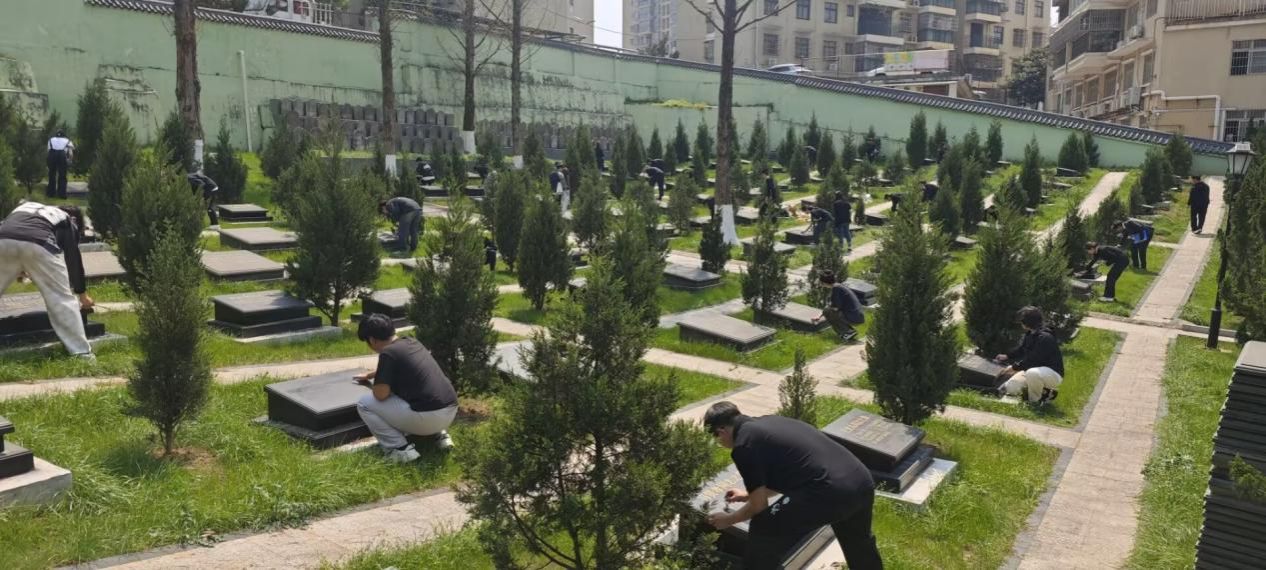 默哀结束后,学员们依次向烈士纪念碑敬献黄菊,并细心擦拭烈士墓碑。阳光下,轻柔拂拭的墓碑显得更加庄重,英烈仿佛跨越时空与当代青年正在对话。每一位学员神情专注,动作轻柔,用最朴实的方式传递对英烈的敬仰之情。这一行为不仅表达了对烈士的崇高敬意,也象征着红色基因的传承。