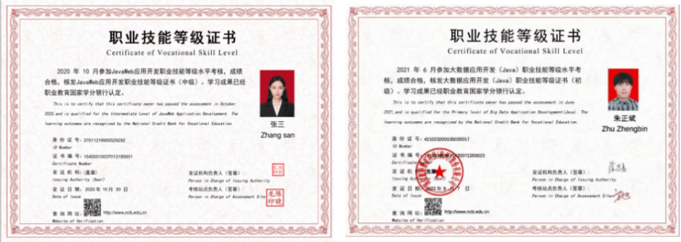 “1+X”Java Web应用开发职业技能等级证书、大数据应用开发(Java)职业技能等级证书;全国计算机技术与软件专业技术资格(水平)考试的软件设计师、程序员、UI界面设计工程师。
