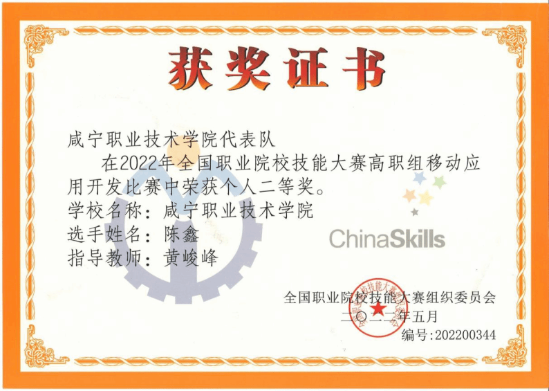 2022和2023年指导学生在全国职业院校技能大赛《移动应用开发》赛项中获得二等奖。