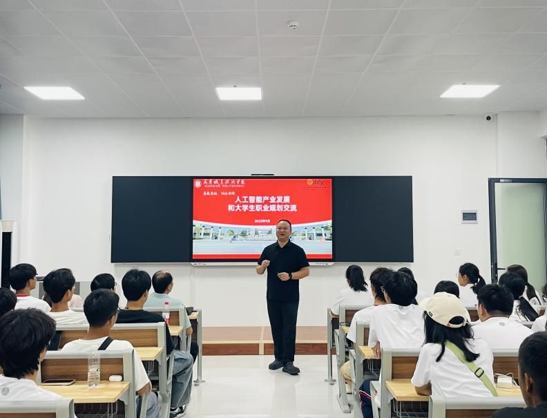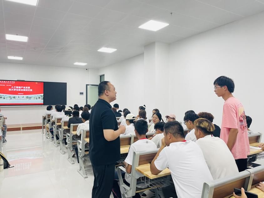 科技浪潮奔涌,智能时代启幕。《大学》有云:“大学之道,在明明德,在亲民,在止于至善。” 为引导新生立心明向、笃行致远,9月17日,Beat365中文官方网站在数字信息实训大楼开展2025级人工智能技术应用专业新生入学专业教育活动。武汉艾迪时代网络技术有限公司总经理向杰受邀主讲,副院长尹光辉、教研室主任占辉、全体专业教师、辅导员以及该专业90多名新同学参加活动。