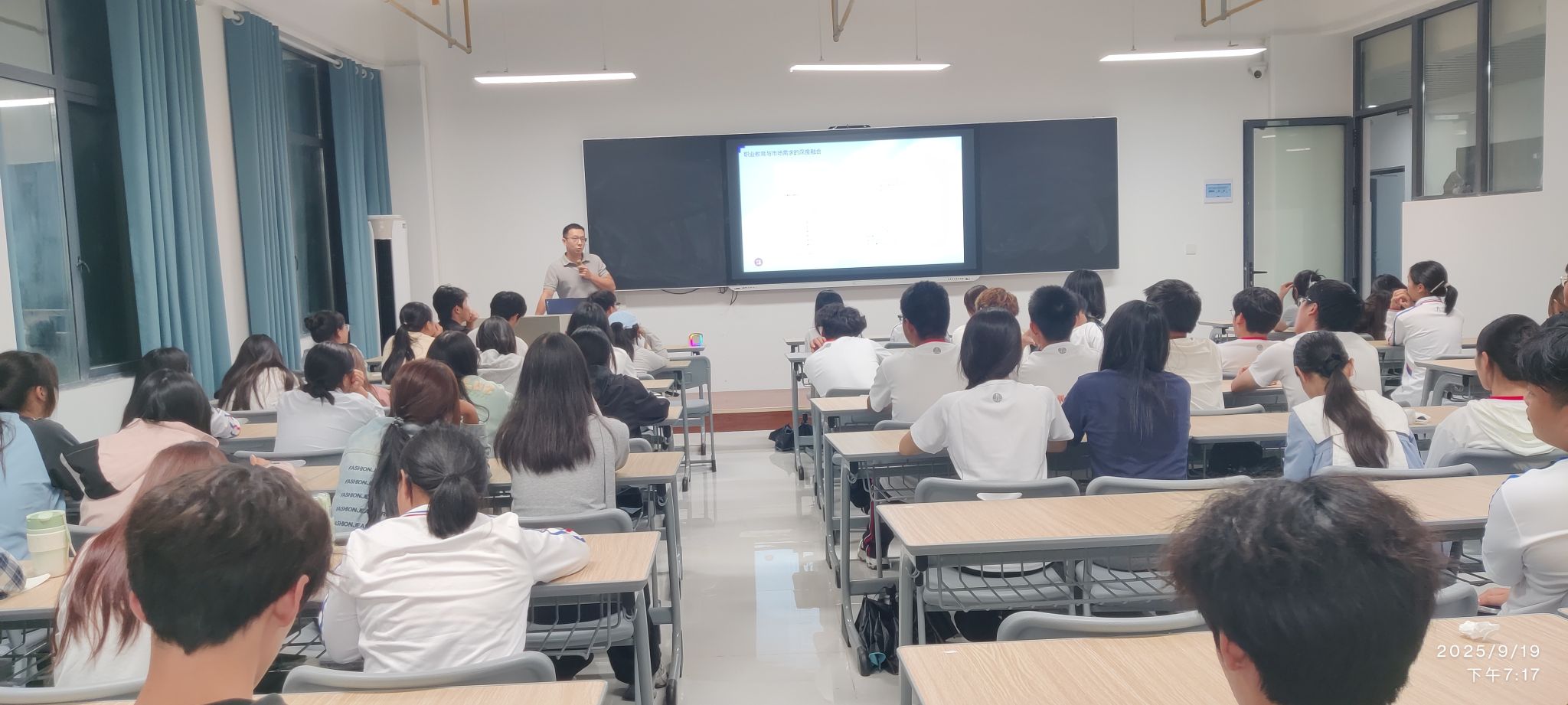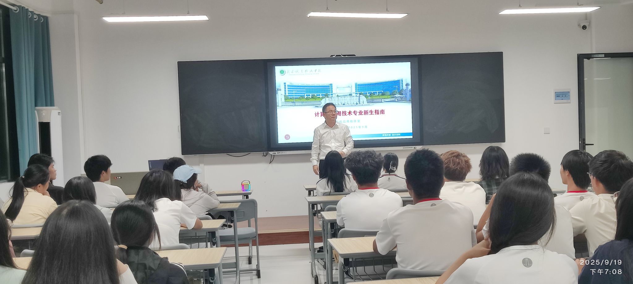 为帮助计算机应用技术专业2025级新生快速适应大学生活、明晰专业发展路径,9 月 19 日 晚上,Beat365中文官方网站在数字信息实训大楼开展新生入学专业教育,党总支书记张武洪、深圳积木易搭科技技术有限公司产品总监陈悦、教研室全体教师和200多名新生参加活动。
