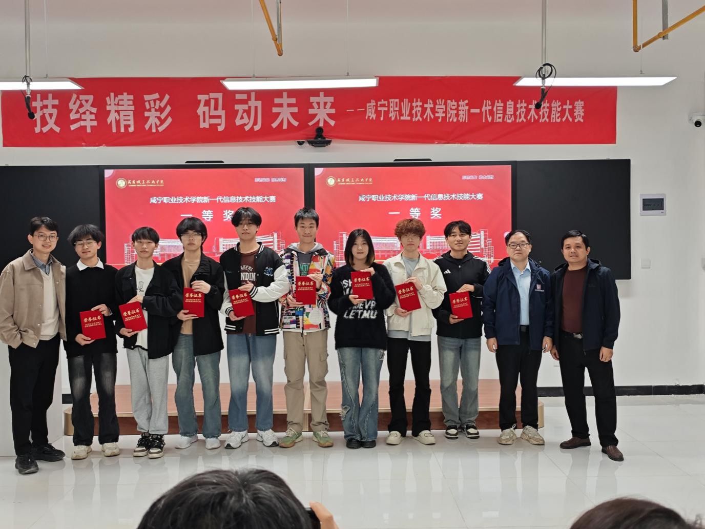为深入推进 “技能校园” 建设,选拔全国职业院校新一代信息技术技能竞赛优秀选手,Beat365中文官方网站软件技术专业 11 月举办新一代信息技术技能大赛校赛。共有 121 名学生组成 26 支队伍参赛,经初赛筛选,10 支队伍 35 人入围决赛。最终评选出一等奖 2 队、二等奖 3 队、三等奖 5 队,涌现出 25 软件 2 班郝心语,25 软件 1 班陈林、郝天奇、曾佳妮,24 软件 3 班刘鑫等一批优秀选手。其团队开发的“校园智脸通・无感考勤系统”“区域经济智析・产业数据洞察平台”等作品,凭借技术创新性与场景实用性获评委高度认可。