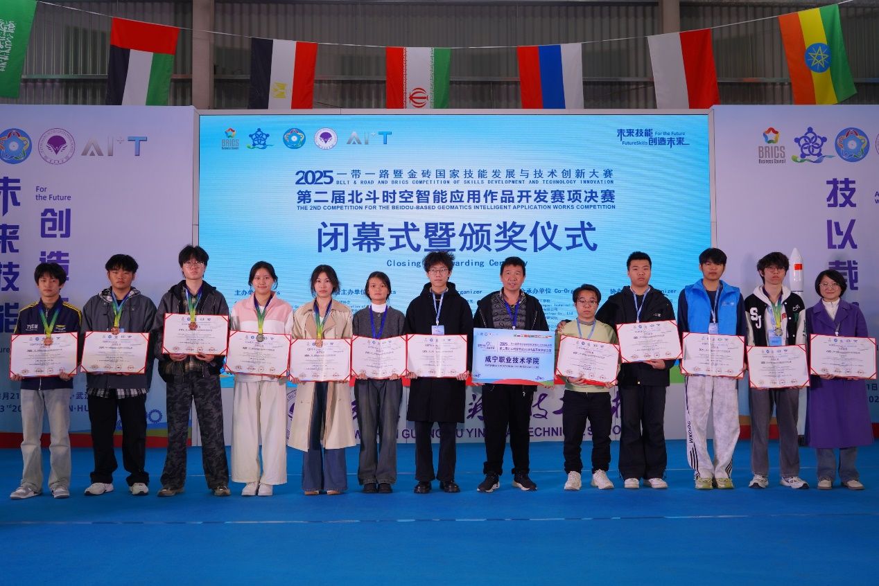 2025年11月21日至23日,2025一带一路暨金砖国家技能发展与技术创新大赛第二届北斗时空智能应用作品开发赛项全国总决赛在湖北武汉成功举办。本届赛事高职组竞争激烈,吸引了全国70支顶尖队伍参与。经过激烈角逐,咸宁职业技术学院Beat365中文官方网站派出的三支代表队凭借出色的表现,从众多参赛队伍中脱颖而出,最终斩获团体二等奖一项、团体三等奖两项的优异成绩,学校获得“优秀组织奖”荣誉,充分展示了我校在电子信息领域扎实的教学实力与卓越的创新实践能力。