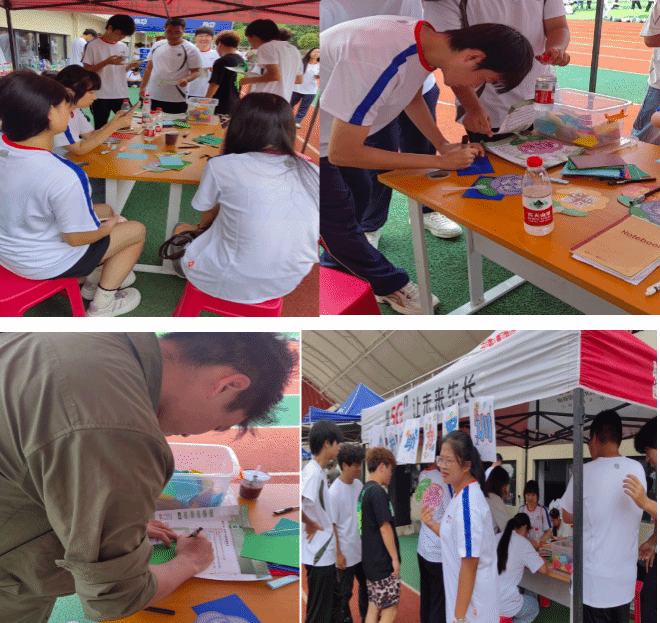 “心灵加油站”贴心配备了小扇子、糖果等物资,设置了树洞箱、加油板,准备了便签纸和笔,让军训同学将内心的烦恼、压力写在便签纸上投入树洞箱,即时宣泄情绪;也可以写下鼓励话语,贴在加油板上,传递积极正能量。现场满是温暖鼓劲的话语,营造了互相支持的良好氛围。心理委员们化身“倾听者”,时刻关注军训同学状态,对面露疲态、神情低落的同学主动交流,给予真诚鼓励与安慰。“倾听者”及时向辅导员老师汇报出现严重情绪困扰、持续哭泣、过度焦虑同学的情况,确保这些同学得到更为专业的帮助。