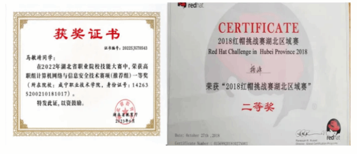 学生在校期间可以考取华为HCNA/HCNP/HCIE认证和红帽RHCSA/RHCE/RHCA认证,1+X网络安全应急响应职业技能等级证书、H3C认证路由交换网络工程师证书、CISP注册信息安全专业人员证书。